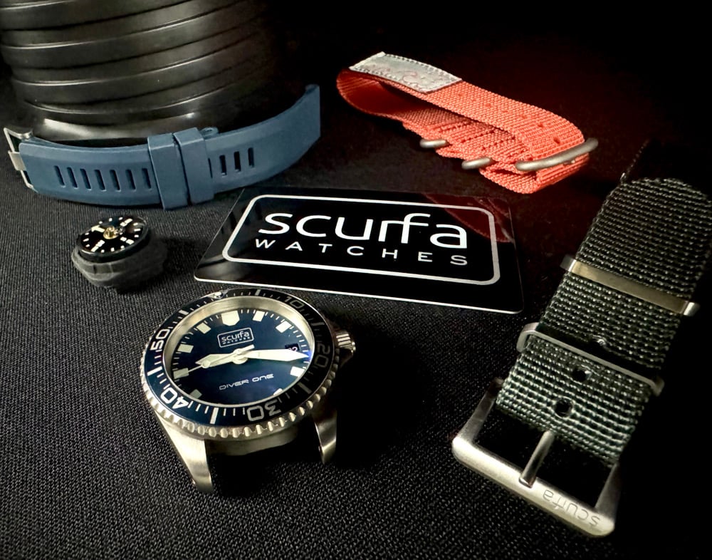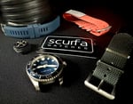 - Straps: Full kit to include the original Scurfa rubber strap, original Scurfa nylon NATO strap, orange PTR nylon NATO strap and PTR watch band compass.