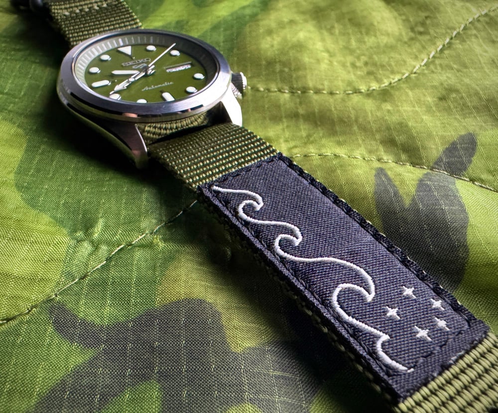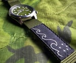 - Case & Band: Stainless steel with Paid to Raid "Raid the Waves" Nylon Nato strap, Hardlex crystal, and Lumibrite on hands and index(es).